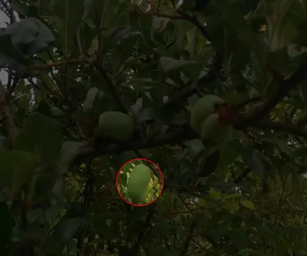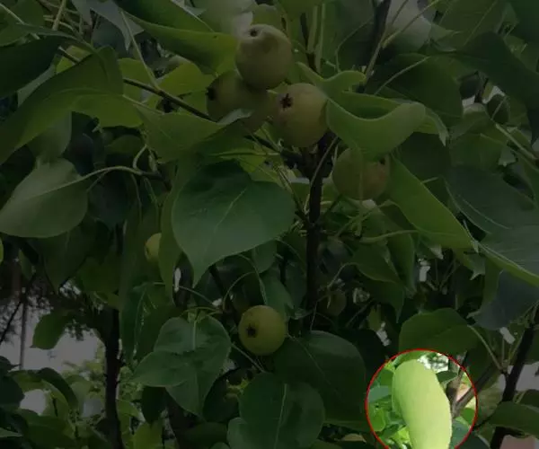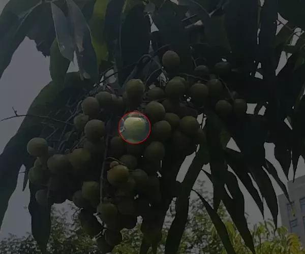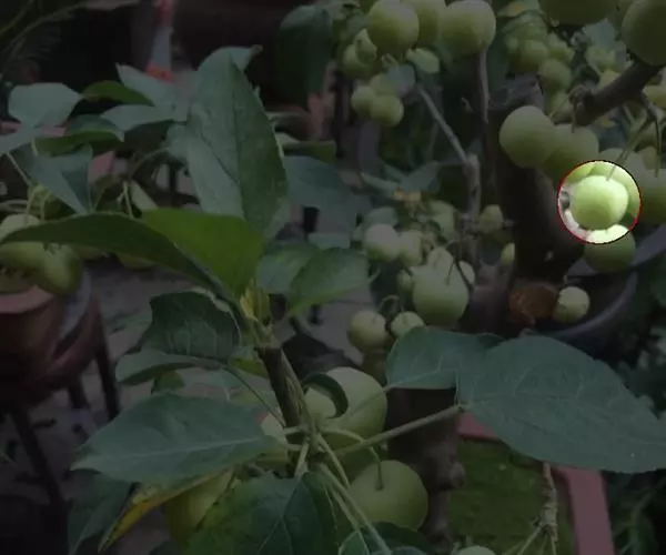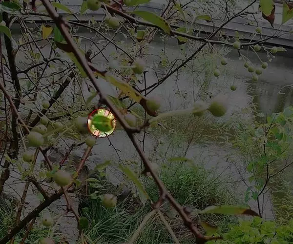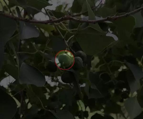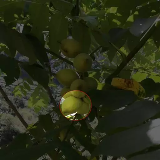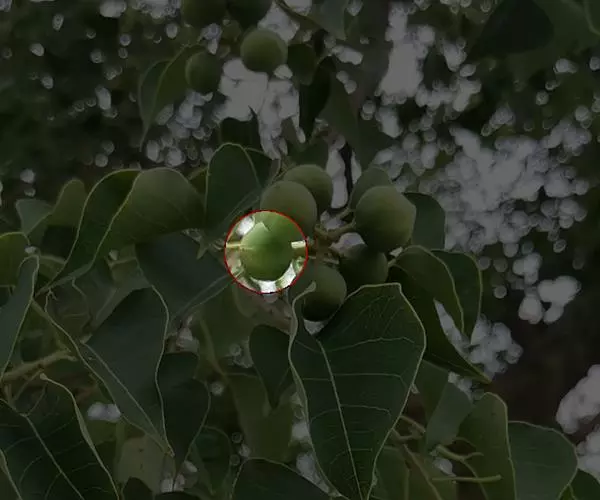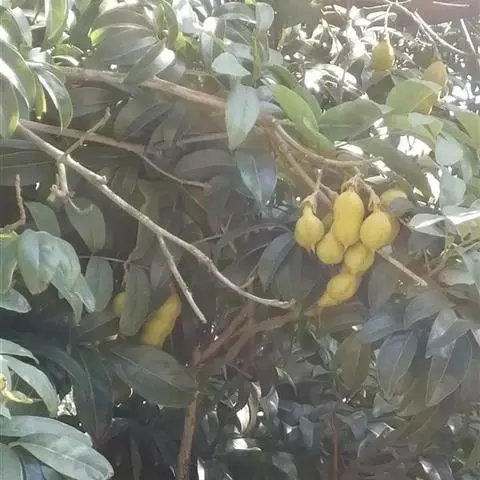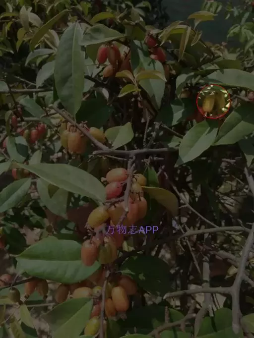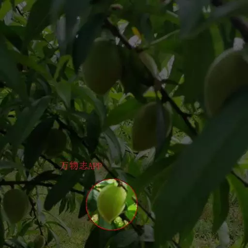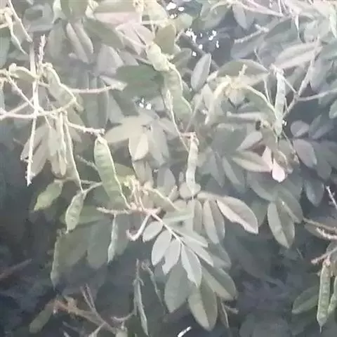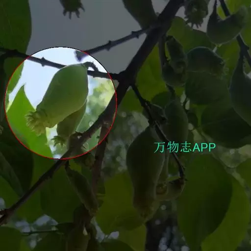 荚果圆形或椭圆形,长5-8cm,宽约5cm,外面有散生硬直的刺,受伤时伤口常有胶汁流出;种子1颗,扁圆形,黑色,直径约1.8cm。花期4-5月;果期6-8月。