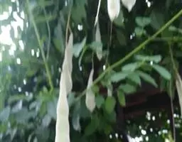 果实于8月下旬成熟,荚果由青色转为黑褐色时便可采收。采下的荚果可置日光下曝晒数日,使之开裂,或摊放于室内,任其晾干后自行开裂,然后取种贮藏。除去果荚即得带有种柄的种子,种柄与种子胶着牢固,不易分离,运输或贮藏时一般都带有种柄。种子需晒干,含水率应在12%以下。种子带柄千粒重约2500g,发芽率95%左右。常温普通干藏,种子发芽力能保持2年。