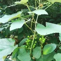 蘡薁,葡萄科葡萄属落叶藤本植物,枝条细长有棱角,叶掌状,有三到五个深裂,缘有钝锯齿,…