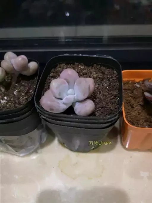 紫珍珠(Echeveria ‘Perle von Nürnberg’)景天科拟石莲花属的多肉植物 ,别称是纽伦堡珍珠。在光照充足且有较大温差的环境下叶片颜色非常鲜亮,但在生长季(一般为夏天)或光照较不足的情况下叶色呈深绿色或灰绿色。夏末秋初从叶片中长出花茎,绽放出略带紫色的橘色花朵。