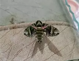 夹竹桃天蛾是鳞翅目天蛾科昆虫。又称夹竹桃白腰天蛾、巴纹天蛾。成虫呈青黑色,四翅正反面都以橄榄色为主调,…