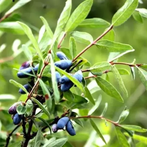 蓝靛果(学名:Lonicera caerulea L. var. edulis Turcz. ex Herd.)是忍冬科,忍冬属蓝果忍冬的变种。落叶灌木,幼枝被毛,老枝棕色,冬芽叉开,叶稀卵形,两面疏生短硬毛,花冠外面有柔毛,花柱无毛,果蓝黑色,稍被白粉,5-6月开花,8-9月结果。