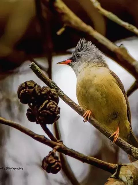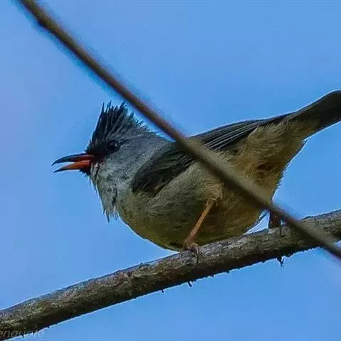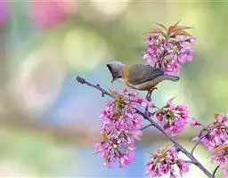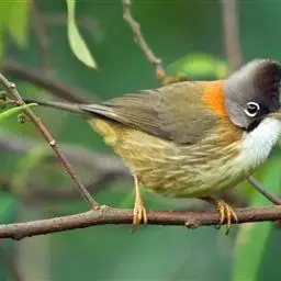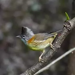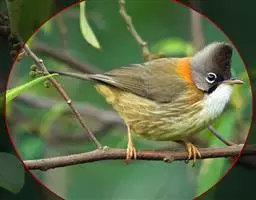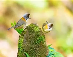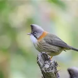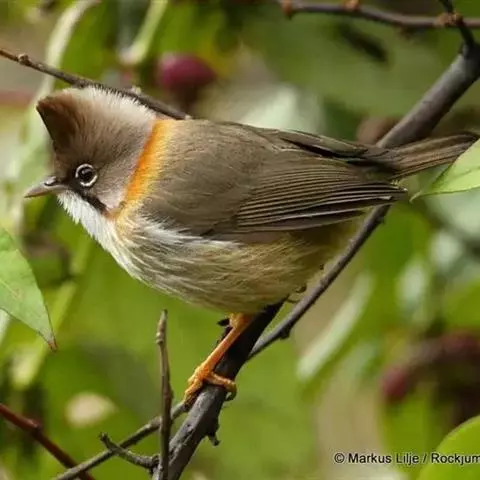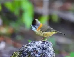 栗耳凤鹛,雌雄羽色相似。额、头顶至枕灰色,头顶有一短的不甚明显的羽冠,…