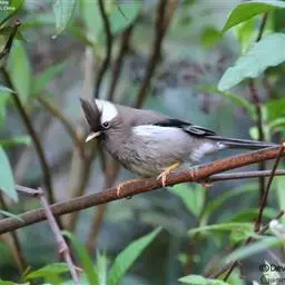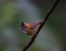 白领凤鹛是画眉科的一类动物。体长15-18厘米。头顶和羽冠土褐色,具白色眼圈,眼先黑色,枕白色,…