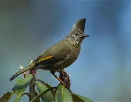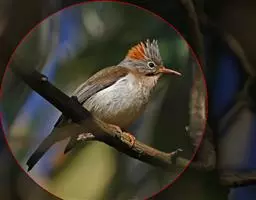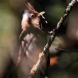 纹喉凤鹛:小型鸟类,体长13-16厘米。头顶和羽冠暗褐色或褐灰色,上体橄榄褐色,飞羽黑褐色,…