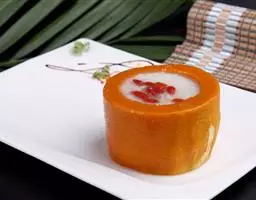 全羊外表金黄油亮,外部肉焦黄发脆,内部肉绵软鲜嫩,羊肉味清香扑鼻,颇为适口,别具一格。