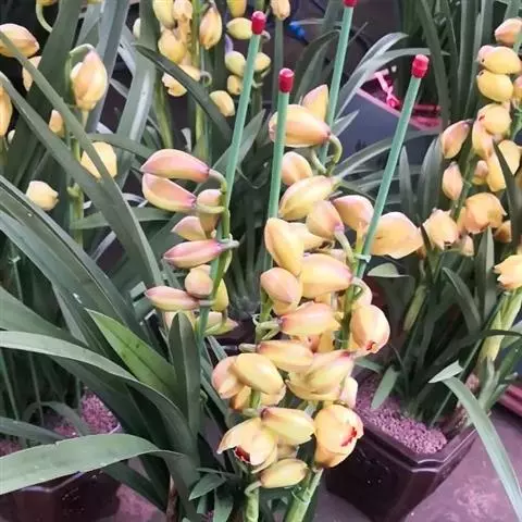 莲瓣兰的栽培养殖用腐叶土栽培莲瓣兰 特殊的地理条件及气候条件孕育了云南品种繁多的野生兰花。据查,全世界兰属植物有50多种,中国分布有20多种,云南的兰属植物各类几乎包括了所有载的国产兰属植物,其中一些各类是云南的特有种,而莲瓣兰为云南的特产珍品。 莲瓣兰是云南(特别是滇西或滇西北)家养历史悠久、影响广泛的品种。莲瓣兰的花朵像荷花,云南人把荷花称为莲花,因而得名。莲瓣兰在白族、纳西族中称为“小雪兰”,我国的台湾兰界称之为“卑亚兰”。莲瓣兰属于典型的春兰属,为地生兰,根白色、粗壮,根不分叉。假鳞茎较小,成椭圆球形。莲瓣兰的叶为线形叶,叶边缘有锯齿,叶基部横断面呈“V”形。花期为12月至翌年3月,葶花2~4朵,花色有红、黄、浅绿、白及素心等品种,香味浓郁。莲瓣兰品种容易识别。