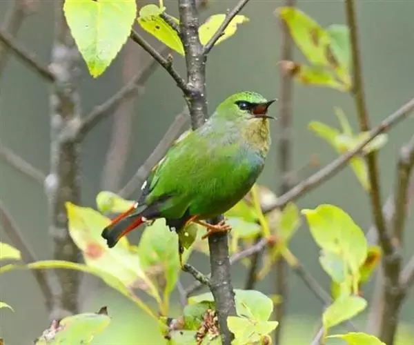 行为 火尾绿鹛(图4) 活动于茂密灌丛,竹林和矮树丛等向阳的地方。单独或结小群活动。与莺类或太阳鸟混群。从杜鹃丛中吸食花蜜。平常无声。联络时发出tsi-tsit高叫。trrrr-trrr-trrr之前有高声尖叫。示警时重复tzip声。 [3-4]