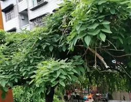落叶藤本;树皮赤褐色。茎右旋,枝较细柔,分枝密,叶茂盛,初时密被褐色短柔毛,后秃净。羽状复叶长20-30厘米;托叶线形,早落;小叶5-9对,薄纸质,卵状披针形,自下而上等大或逐渐狭短,长4-8厘米,宽1-2.5厘米,先端渐尖,基部钝或歪斜,嫩时两面被平伏毛,后渐秃净;小叶柄长3-4毫米,干后变黑色,被柔毛;小托叶刺毛状,长约3毫米,易脱落。