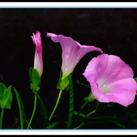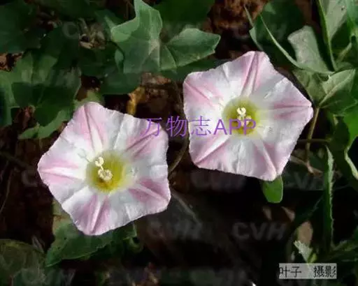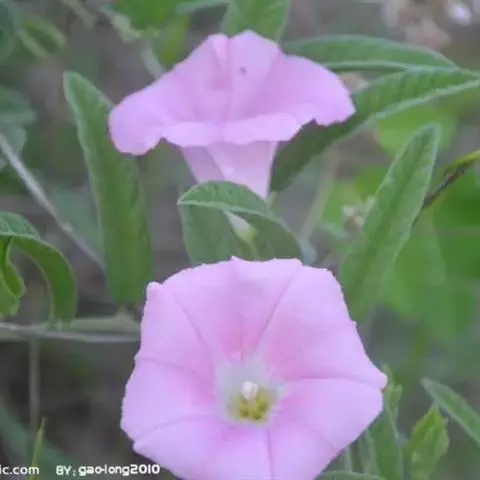 花腋生,花梗长于叶柄,苞片宽卵形;萼片长圆形,顶端钝,具小短尖头,内萼片稍短;花冠淡紫色或淡红色,钟状,冠檐近截形或微裂;雄蕊近等长,花丝基部扩大,贴生花冠管基部,被小鳞毛;子房无毛,柱头2裂,裂片长圆形,扁平。