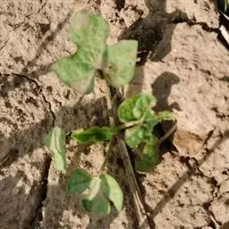 一年生草本, 全体不被毛,植株通常矮小,常自基部分枝,具细长白色的根。茎细,平卧,有细棱。基部叶片长圆形,顶端圆,基部戟形,上部叶片3裂,中裂片长圆形或长圆状披针形,侧裂片近三角形,叶片基部心形或戟形。