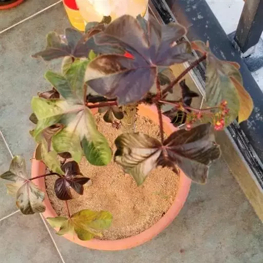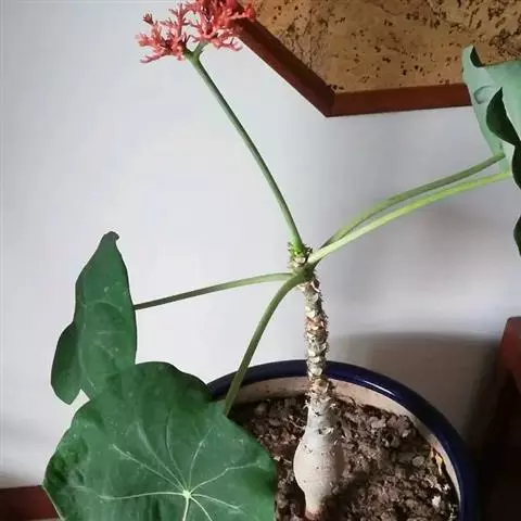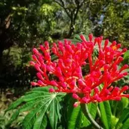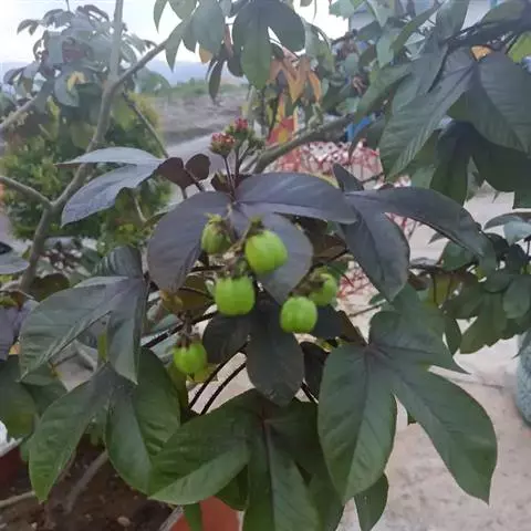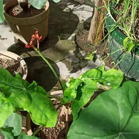 棉叶珊瑚花 (拉丁学名:Jatropha gossypiifolia Linn.)别名:红叶麻风树、棉叶麻风树、棉叶膏桐、棉叶木花生。为双子叶植物纲、大戟科、麻疯树属多年生落叶灌木或小乔木,株高2~6米。树皮光滑,苍白色;具乳汁,无毛。全株有毒。