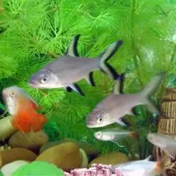 银鲨别名黑鳍袋唇鱼,是鲤科袋唇鱼属鱼类。其成鱼体长约30厘米,身体呈流线型,背鳍、尾鳍大而尖锐。…