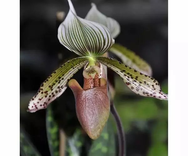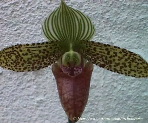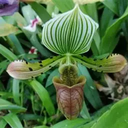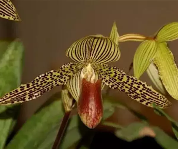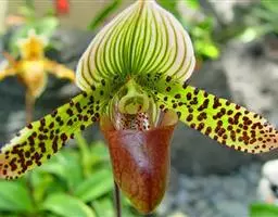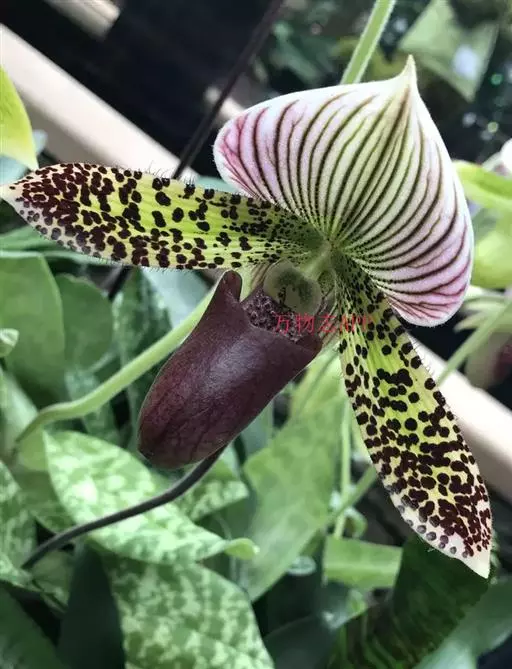 虎斑兜兰兰科,兜兰属地生或半附生植物。叶基生;数枚至多枚,叶片带形、革质。花葶从叶丛中长出,花苞片…