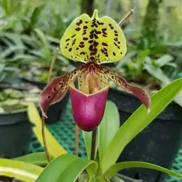 兜兰又名拖鞋兰,夏秋或临冬开花,花期 彩云兜兰 最长达70余天。西南地区的兜兰叶片通常要厚实硬朗些,花色更为亮丽显眼,有更好的抗旱保水机制,在抗逆性新品种选育上具有非常高的利用价值。