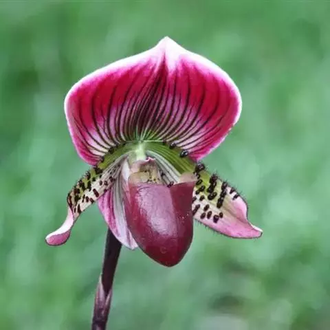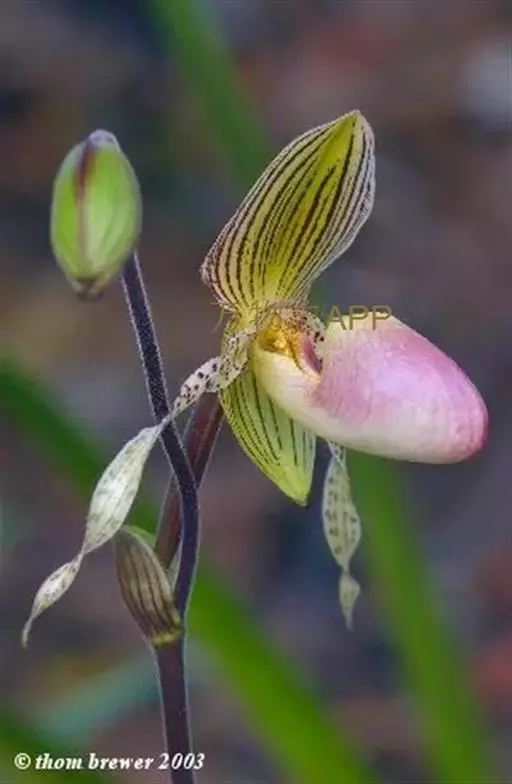 麻栗坡兜兰兰科,兜兰属地生或半附生植物。叶基生;数枚至多枚,叶片带形、革质。花葶从叶丛中长出,…