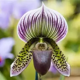 紫纹兜兰 Stein)是兰科兜兰属的地生或半附生植物。叶基生,叶片狭椭圆形或长圆状椭圆形,…