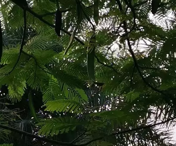 遮荫树:在盛夏7~8厘米胸径的凤凰木最大冠幅可达8~10米,其遮光率在50%~70%之间,凤凰木分枝较多,树冠中间与边缘相差不大,遮荫效果比较均匀且通风条件较好。树冠内相对温度比外界裸露处低3℃,最大低6℃。夏季栽植地一般维持在23~28℃左右,树冠内相对湿度比外界裸露地高10%~20%。