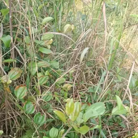 菝葜,菝葜科菝葜属 多年生藤本落叶攀附植物,茎干较粗,嫩白色,呈圆柱形,表面带有小刺;叶子较大,…
