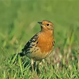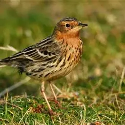 黄腹鹨:是雀形目鹡鸰科的鸟类,属小型鸣禽,体长约15厘米。似树鹨但上体褐色浓重,上喙较细长,…