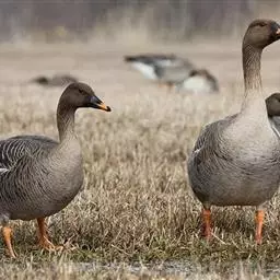 豆雁,雁形目鸭科。成鸟头、颈、背灰褐色,带淡黄色羽缘;尾上覆羽白色,尾羽黑褐色带白端,…