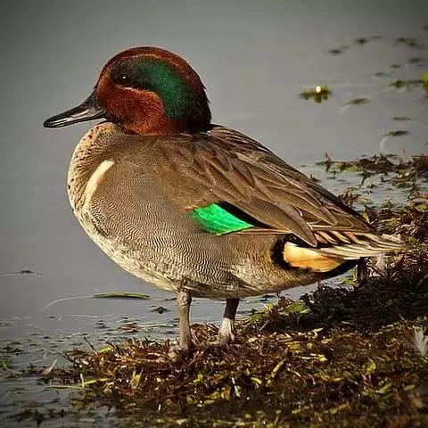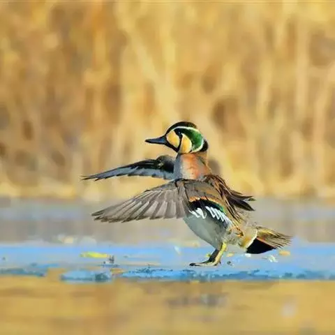 蓝翅鸭是雁形目、鸭科的鸟类。身长37-41 cm,头部灰色,眼圈、眼纹和眼先均灰白色。体羽红褐色,…