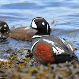 鹊鸭是雁形目鸭科鹊鸭属鸟类。鹊鸭雄鸟头颈部近黑色泛绿色光泽,…