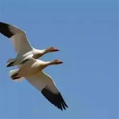 雪雁是鸭科雁属鸟类,雁属中体形大,个体重的鸟类。羽毛洁白,翼角黑色。飞行时双翼拍打用力,振翅频率高。…