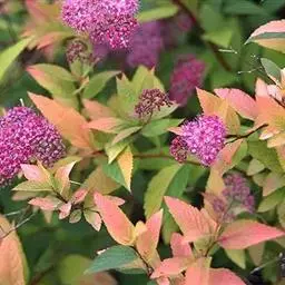 金焰绣线菊,栽培种,为落叶灌木,芽小,芽鳞2-8。单叶互生,具锯齿、缺刻或分裂,稀全缘,羽状脉,…
