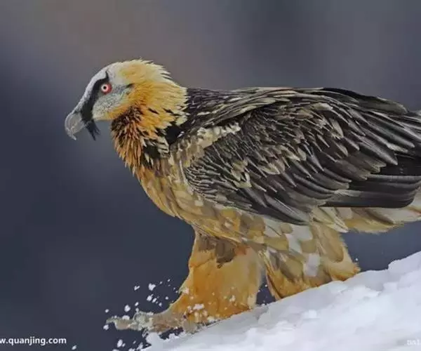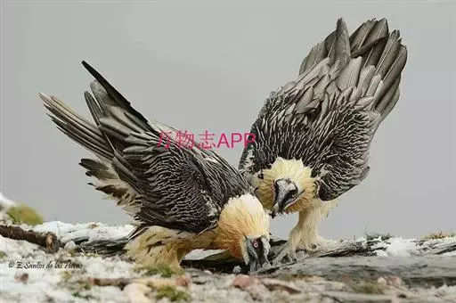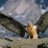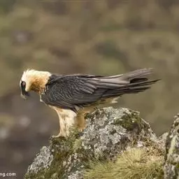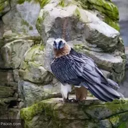 胡兀鹫(学名:Gypaetus barbatus):也名胡秃鹫,体重3.5-5.6千克;体长1-1.4米。全身羽色大致为黑褐色。它的名字因吊在嘴下的黑色胡须而得。头灰白色,有黑色贯眼纹,向前延伸与颏部的须状羽相连。后头、颈、胸和上腹红褐色,后头和前胸上有黑色斑点。体型一般是雌鸟比雄鸟稍大。