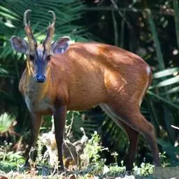 赤麂是鲸偶蹄目鹿科麂属哺乳动物,又名红麂、印度麂、角麂、吠鹿。脸部较狭长,额部V字形黑纹特别明显,…