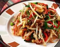 酿皮子(在甘肃小吃中,酿皮读rang pi),西北特色风味小吃,味美爽口,经济实惠,既有菜又有饭。同时又是一种“快餐”,受到群众的喜爱。酿皮子一年四季都有出售,其特点是色泽橙黄而透明,吃起来柔软又有韧劲,风味特佳。食用时,要将涮好的一张张酿皮子切成细条,上面再放上几块蒸熟的,切成薄片的面筋,浇上辣椒油、醋、蒜末、酱油、芥末等佐料,其色悦目,香味诱人。