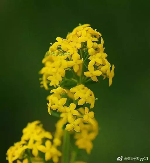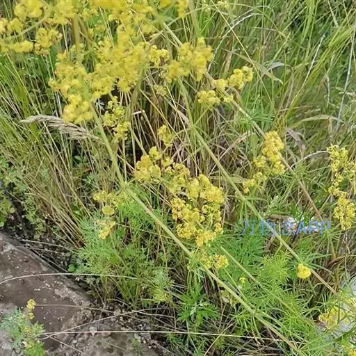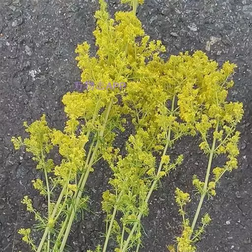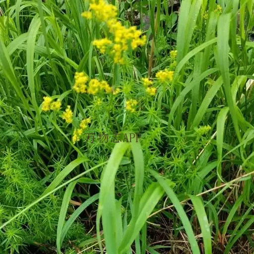 蓬子菜,又名黄牛尾。多年生直立草本。根茎粗短,根圆柱形,粗长而弯曲,稍木质。茎丛生,基部稍木质化,四棱形,幼时有柔毛。叶6-10片,轮生;无柄;叶片线形,长1-5cm,宽1-2mm,先端急尖,上面稍有光泽,仅下面沿中脉二侧被柔毛,边缘反卷。聚伞花序集成顶生的圆锥花序状,稍紧密;花序梗有灰白色细毛;花具短柄;萼筒全部与子房愈合,无毛;花冠辐状,淡黄色,花冠筒极短,裂片4,卵形,雄蕊4,子房2室,花柱2,柱头头状。双悬果2,扁球形,直径约1.8-2mm,无毛。花期6-7月,果期8-9月。
