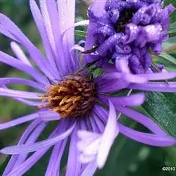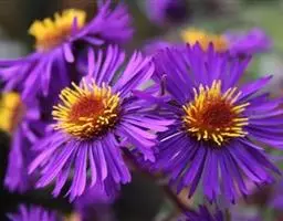舌状花约100个或更多;舌片紫蓝色,长20-30毫米,宽约1毫米。管状花长约7毫米,管部长2毫米,上部黄色,被疏毛,裂片长1-1.5毫米。冠毛2层,外层极短,膜片状;内层白色或污白色,有与管状花花冠等长的微糙毛。