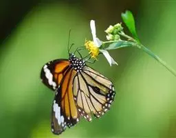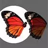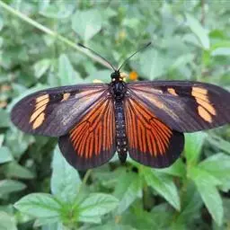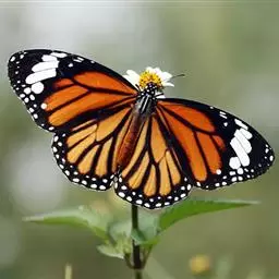 黑脉金斑蝶:翅阔8.6-12.4厘米。雄蝶较雌蝶为大。成年蝶颜色鲜艳,翅膀上有显眼的橙色及黑色斑纹…