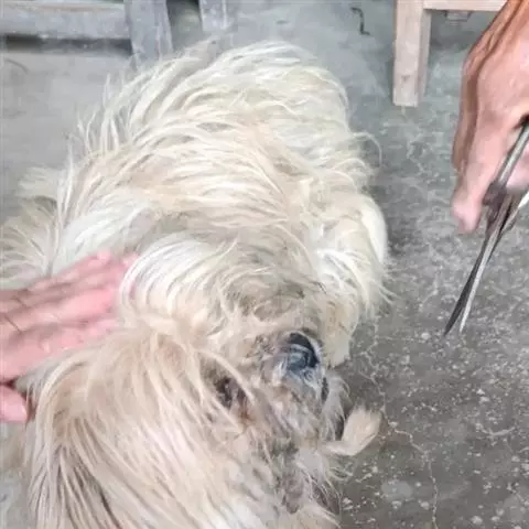 多梳理毛发有利于毛发健康。为参加犬展比赛,用弯剪子修理胡须,对于长毛类型的犬,应注意修剪脚周围及脚垫之间的毛发。