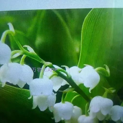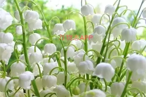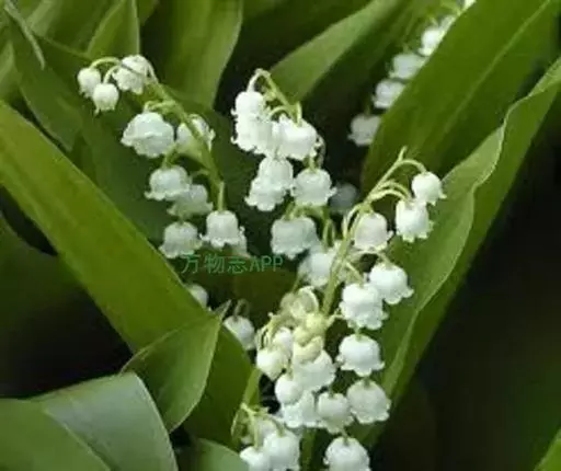 铃兰(学名:Convallaria majalis Linn.)又名君影草、山谷百合、风铃草。气味甜,全株有毒。多年生草本。植株矮小,全株无毛,地下有多分枝而匍匐平展的根状茎。具光泽。呈鞘状互相抱着,基部有数枚鞘状的膜质鳞片。叶椭圆形或卵状披针形,花钟状,下垂,总状花序,苞片披针形,膜质,花柱比花被短。入秋结圆球形暗红色浆果,有毒,内有椭圆形种子,扁平。花果期5~7月。