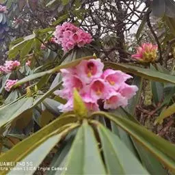 云锦杜鹃是杜鹃花科杜鹃属常绿灌木或小乔木;株高达12米;枝小枝粗,黄绿色,初具腺体;叶叶厚革质,…