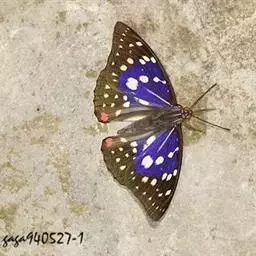 大紫蛱蝶为大型蝶种,翅展约86~110mm。翅紫黑色,有白色斑点点缀其中,雄蝶的翅具强烈紫色虹彩,…