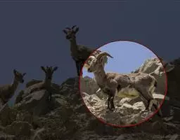 盘羊:雄性肩高可达120厘米,体重可达200千克。雄性的弯角粗大,长达1米以上,向下扭曲呈螺旋状,…
