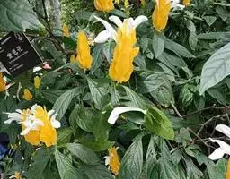 爵床科银脉爵床属常绿灌木,多分枝。叶卵形至卵状椭圆形,长20—30cm,缘有钝齿,叶色浓绿,有光泽,叶脉银白色。穗状花序单生或三出;小花沿花序轴紧密排列成对称的4列。苞片橙黄色,醒目而突出,花冠黄色,二唇状;花期夏秋。叶脉黄色者为金脉爵床。