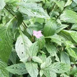 上升草本;茎被硬毛,下部节上生根。叶膜质,卵形或圆卵形,长7-22毫米,宽7-17毫米,顶端钝,基部宽楔形,边缘有疏离的波状或全缘,上面绿色,下面灰白色,两面被疏柔毛,白色网状。花无梗;苞片,小苞片,花萼裂片外面被腺状柔毛,里面有腺点。苞片倒披针形,长约2-3厘米,小苞片线形,长2毫米;花萼5深裂,裂片长3-3.5毫米,具微毛和纤毛;花冠长5毫米,外面光滑,下方裂片,倒卵状椭圆形,开展,长2.5-3毫米,顶端钝,冠管长2.5-3毫米,喉部里面稍被微柔毛;花丝光滑无毛,长1毫米,花药长0.8毫米,花粉粒具3孔,赤道面观近长圆形,极面观圆形,长50-60微米,细网状纹饰。子房长达1.5毫米,光滑,花柱丝状,长4毫米,光滑。