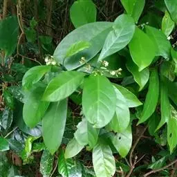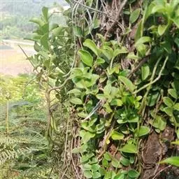 蔓九节,别名:拎壁龙、风不动藤(台湾植物志),穿根藤(潮州志),娱蚣藤(海南檐县),崧筋藤、上树龙。是茜草目茜草科九节属植物。攀缘藤本,长达5米或更长,全株无毛;嫩枝稍扁,有细直纹,老枝柱状,近木 质,攀附枝有一列短而密的气根。叶对生,厚纸质,椭圆形至卵形,或倒卵形至 倒披针形,长2—6厘米,游离枝上的较大,通常钝头,边反卷,侧脉稀疏,约4— 6对,不很明显;托叶披针形,很快脱落。