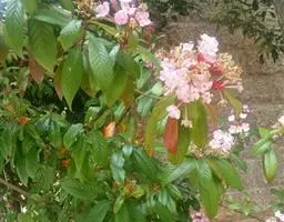 聚伞花序顶生,有花多朵,总花梗长可 达3厘米;花小,白色,芳香;萼檐碟状,有5个不很明显的裂片,花冠长5-6毫米 ,仅喉部有毛。
