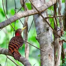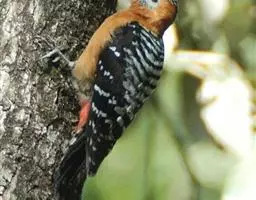 棕腹啄木鸟为啄木鸟科,啄木鸟属是中等体型的鸟类,体长约20厘米。头顶部具红色斑带。脚强健,有趾4个,…
