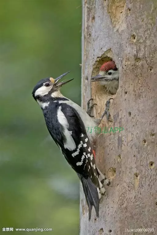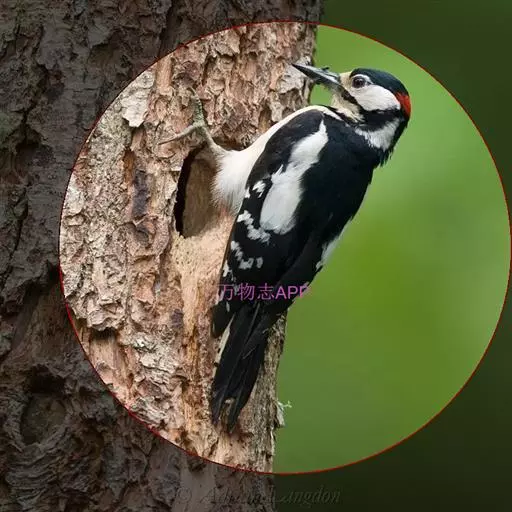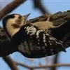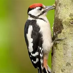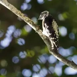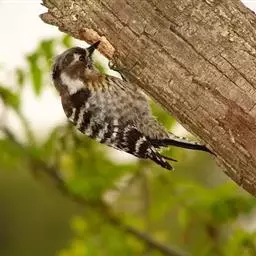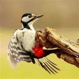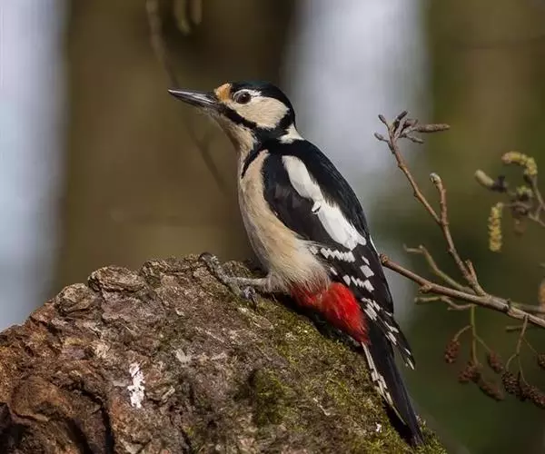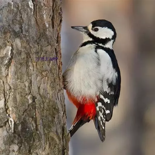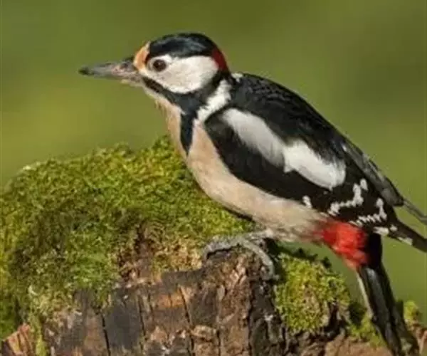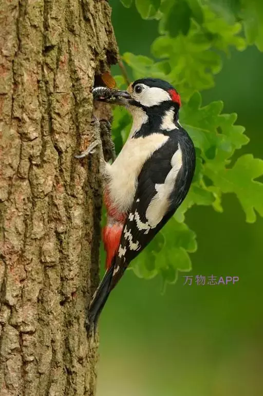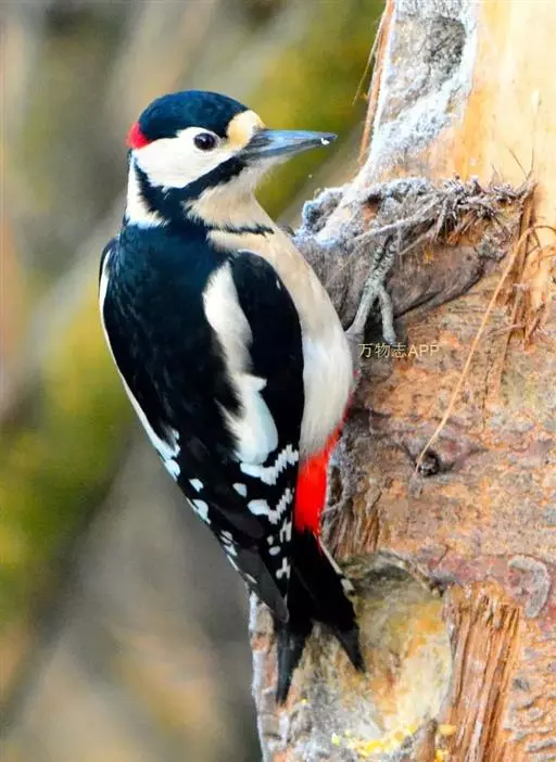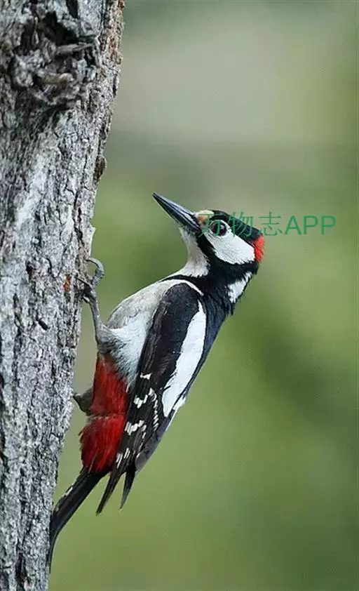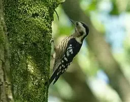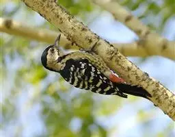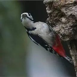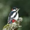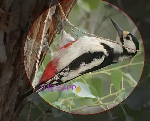 大斑啄木鸟(学名:Dendrocopos major)又名赤鴷、臭奔得儿木、花奔得儿木、花啄木、白花啄木鸟、啄木冠、叼木冠。小型鸟类,体长20~25厘米。上体主要为黑色,额、颊和耳羽白色,肩和翅上各有一块大的白斑。尾黑色,外侧尾羽具黑白相间横斑,飞羽亦具黑白相间的横斑。下体污白色,无斑;下腹和尾下覆羽鲜红色。雄鸟枕部红色。本物种未列入保护目录,但受到非法捕猎的威胁,中医传统理论认为本物种全体有滋养补虚、消肿止痛的功效,刺激了对本物种的捕猎。另外由于本物种喜食很多林业害虫,因此被誉为“森林医生”。有很多机构在研究对本物种的人工饲养和招引,有一些机构还取得了一定的进展。