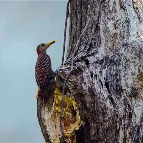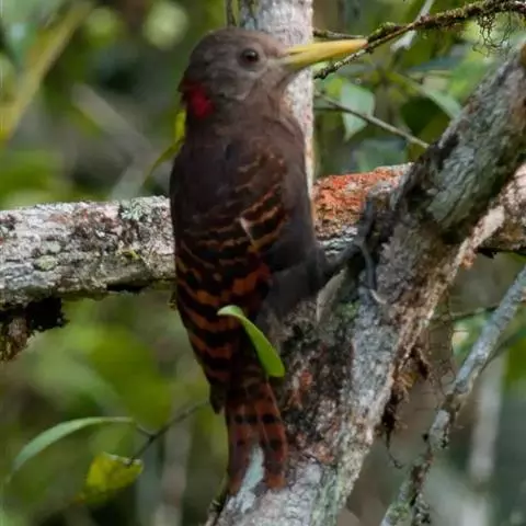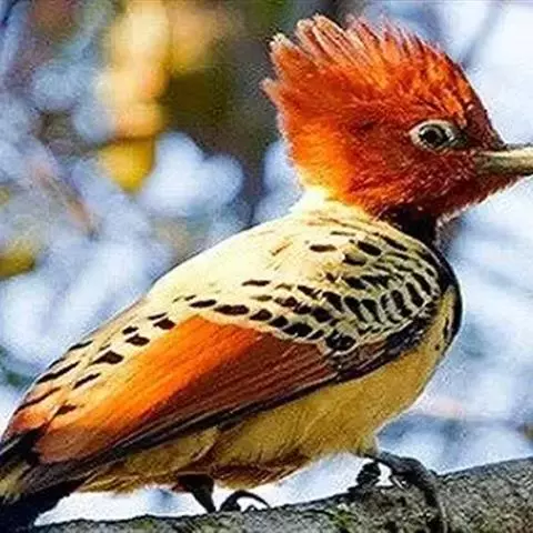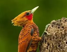 栗啄木鸟:是一种红褐色啄木鸟,体长21厘米。雄性成鸟整个头棕色,…