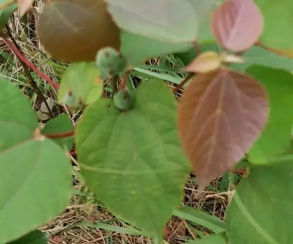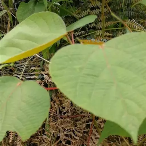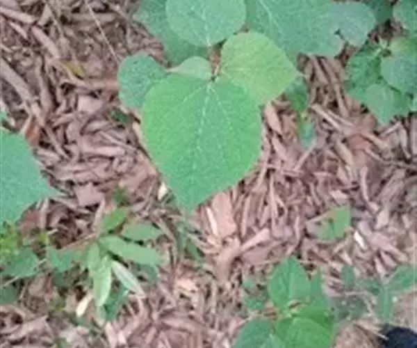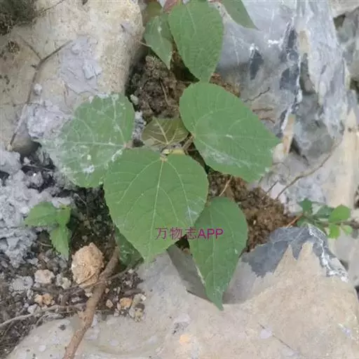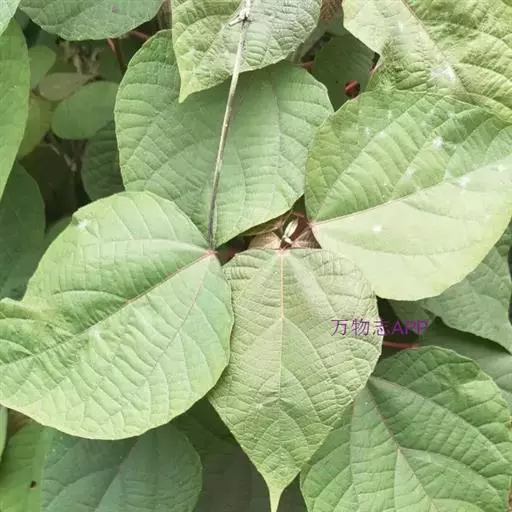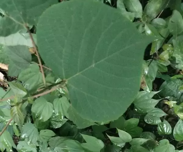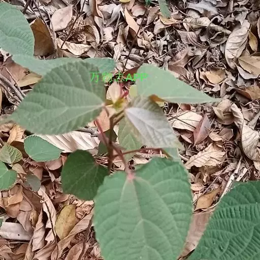 灌木,高1-2米;小枝被灰色微柔毛,后变无毛。叶薄纸质,阔卵形,长8-15厘米,宽7-13厘米,顶端急尖或渐尖,基部浅心形或近截平,边缘疏生具腺小齿,上面无毛,下面浅红色,仅沿脉被微柔毛,基部具斑状腺体4个;基出脉3条;小托叶披针形,长2-3.5毫米;叶柄长7-12厘米;托叶钻状,长3-5毫米,具毛,凋落。雌雄异株,雄花序穗状,腋生或生于一年生小枝已落叶腋部,长7-15厘米,具微柔毛,苞片三角形,长约1毫米,雄花(3-5) 11-15朵簇生于苞腋;花梗长约2毫米,无毛,中部具关节;雌花序总状,顶生,长5-6厘米,具花5-12朵,各部均被微柔毛,苞片狭三角形,长约4毫米,基部具腺体2个,小苞片披针形,长约3毫米;花梗长1毫米;雄花:花萼花蕾时球形,无毛,直径1.5毫米,萼片4枚,长圆形;雄蕊(7-)8枚;雌花:萼片5 (-6)枚,披针形,长3-4毫米,被短柔毛,其中1枚的基部具1个腺体;子房球形,被短绒毛,花柱3枚,线状,长12-15毫米,合生部分长不及1毫米。蒴果球形,具3圆棱,直径8-10毫米,果皮平坦,被微柔毛;种子扁卵状,长6毫米,种皮浅褐色,具瘤体。花期3-5月,果期6-8月。