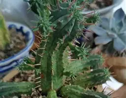 小乔木,高2~6米,直径10~25厘米,老时呈灰色或淡灰色,幼时绿色,上部平展或分枝;小枝肉质光棍…