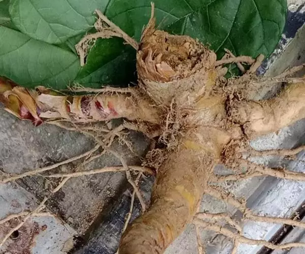 3、滇黄精:根茎肥厚,姜快状或连珠状,直往2~4cm或以上,每一结节有明显茎痕,圆盘状,稍凹陷,宜往5~8mm;须根痕多,常突出,宜径约2mm。表面黄白色至黄棕色,有明显环节及不规则纵皱。质实,较柔韧,不易折断,断面黄白色,平坦,颗粒状,有众多深色维管束小点。气微,味甜,有粘性。